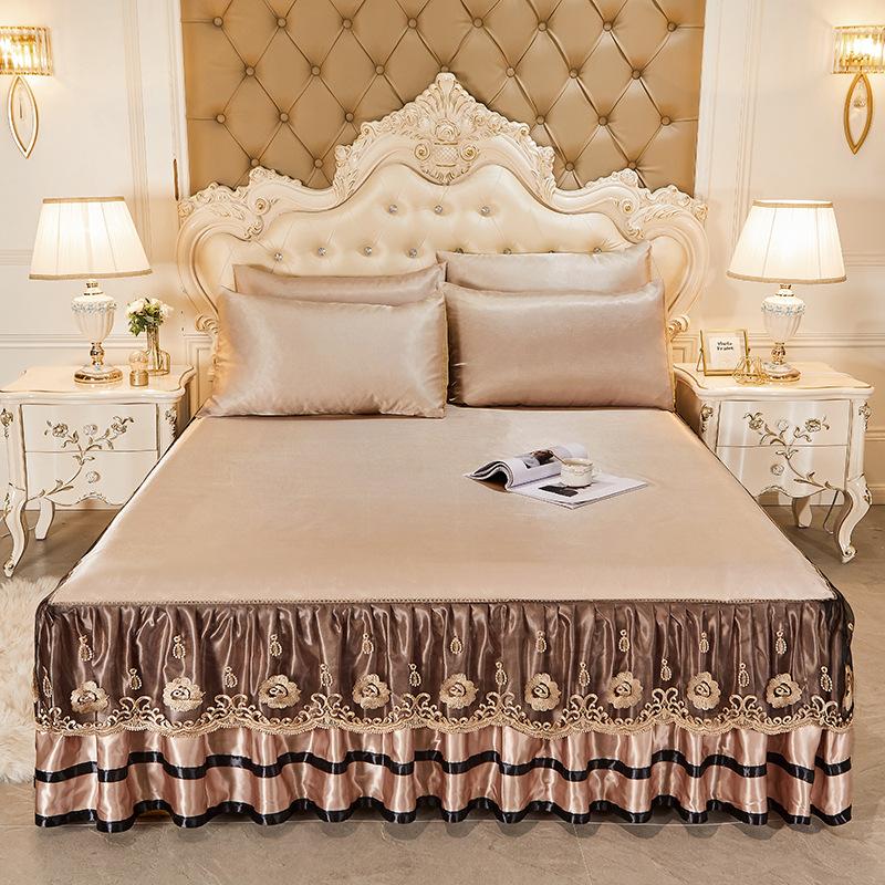 Кружевная простыня, роскошный комплект постельного белья, романтический коврик для льда, складные простыни с вышивкой, льняное постельное белье, королевское покрывало с юбкой 3 Pcs 150x200cm