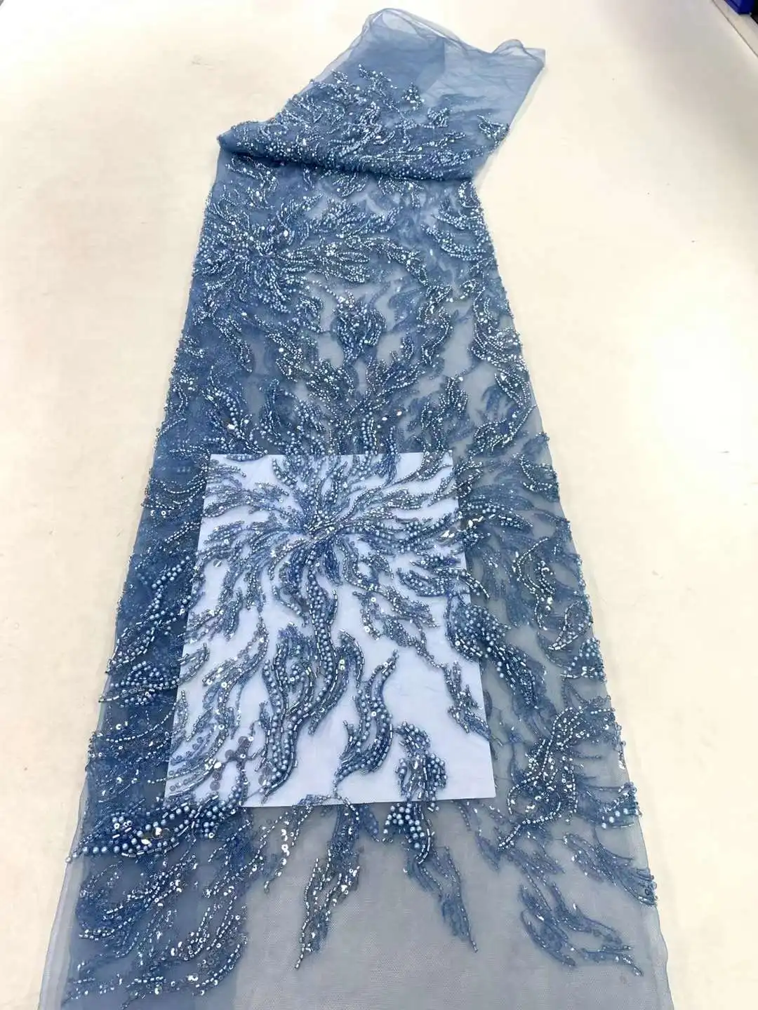 Кружевная ткань с блестками и вышивкой из бисера, элегантная французская сетчатая кружевная ткань с бусинами, ткань