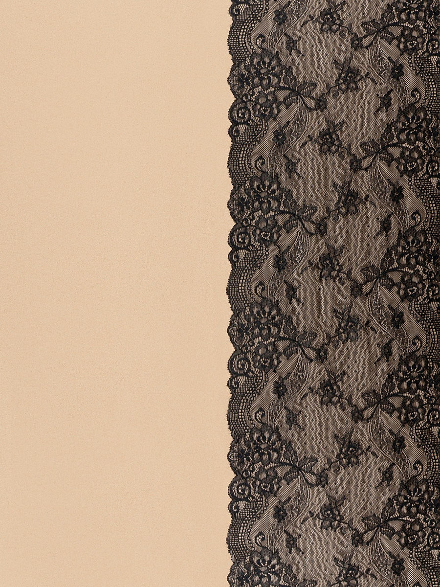 Создайте уникальные проекты! Эластичная черная кружевная ткань, шириной 240 мм это идеальный материал для креативных решений в моде и дизайне. Комбинация нейлона и спандекса придает ткани прочность и эластичность, создавая динамичные образы и комфортные изделия.