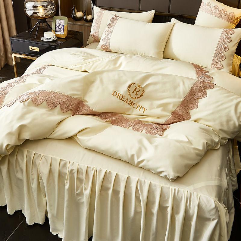 Кружевная юбка-кровать в европейском стиле, комплект из четырех предметов, однотонное противоскользящее покрывало, универсальное матовое постельное белье Four Seasons, комплект из четырех предметов \ юбка-кровать \ кружевная отделка 2M