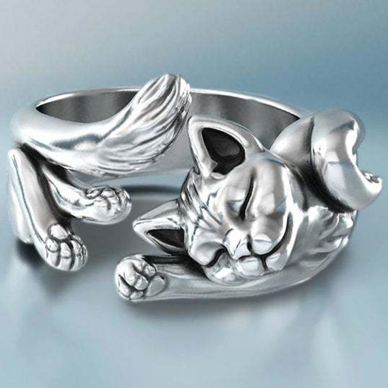 Новые винтажные милые кольца с кошками, женские ювелирные изделия, подарок на день рождения, модное кольцо открытого размера из стерлингового серебра 925 пробы, аксессуары для вечеринок для девочек Resizable серебряный