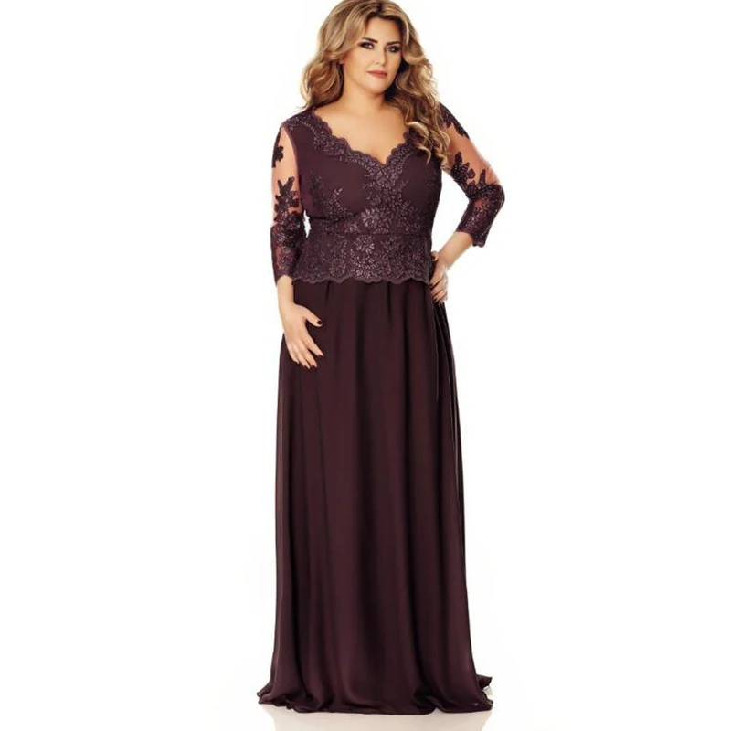 Кружевное платье для матери невесты, с глубоким V-образным вырезом, рукавами 2021, размера плюс, 3/4