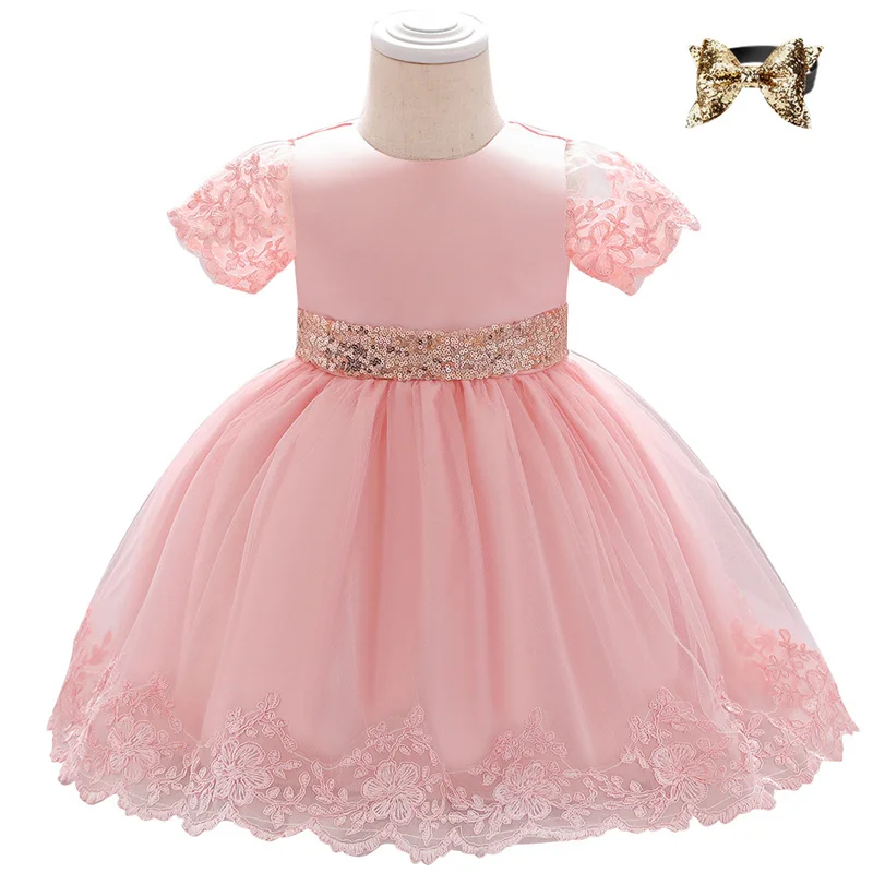 Кружевное платье-пачка для девочек с большим бантом и блестками