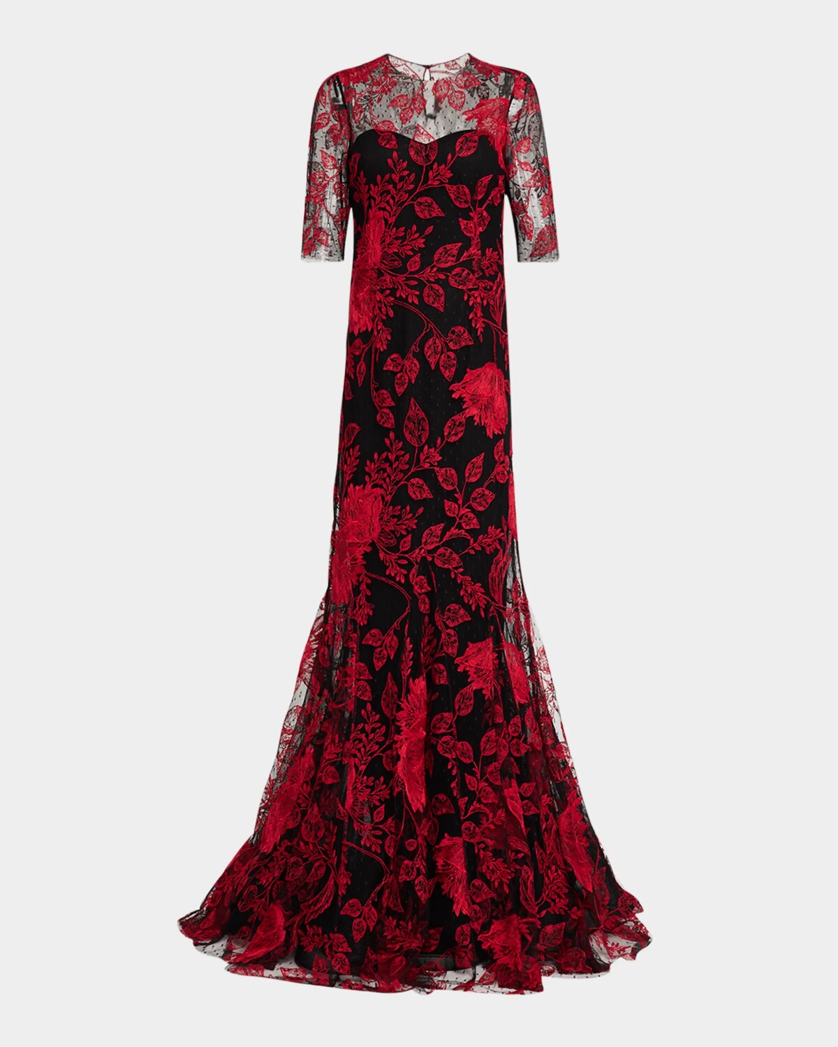 Кружевное платье с цветочной вышивкой Rickie Freeman For Teri Jon, цвет Black Red