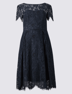 Кружевное расклешенное платье с коротким рукавом