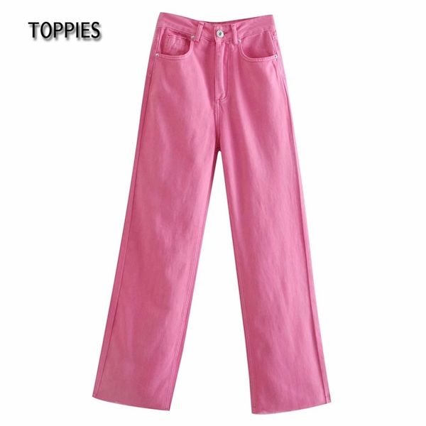 fashion long jeans rose pink straight denim pants high waist woman trousers streetwear 210421, Blue