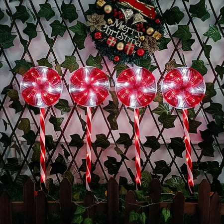 4 Packs Solar Lollipops Cane Light Candy Cane Walkside Lights with 8 Modes for Holiday Xmas Patio Walkway