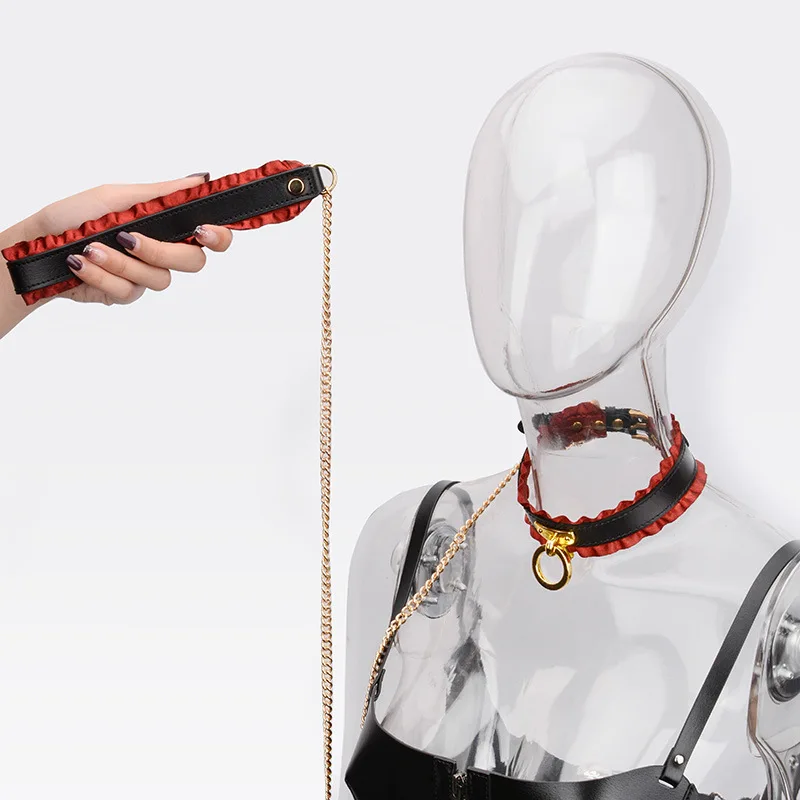 Кружевной ошейник с изображением собаки в комплекте с изображением рабыня БДСМ в винтажном стиле с изображением листьев лотоса для взрослы...