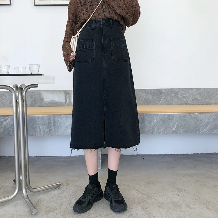 S-XL Long Denim Skirt 2020 korean style High Waist Midi Skirts Women split Jean Skirt Style Saia Jeans (72795