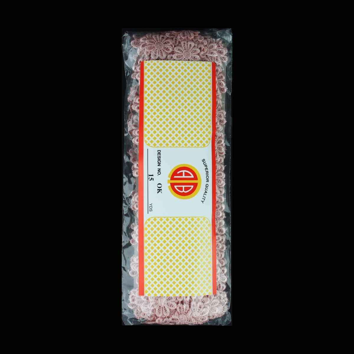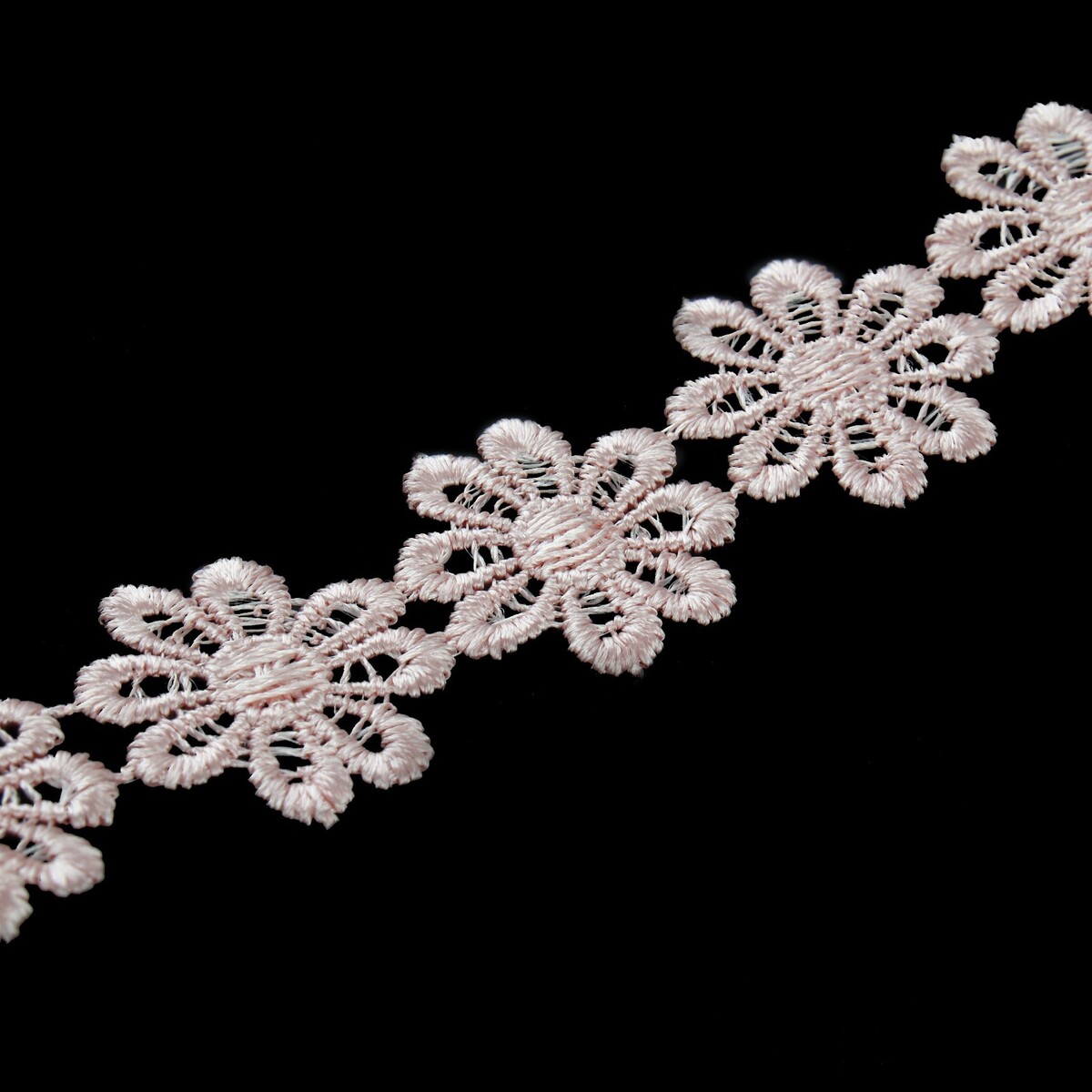 Кружево гипюровое, 25 мм × 13 ± 0,5 м, цвет пудровый, Розовый