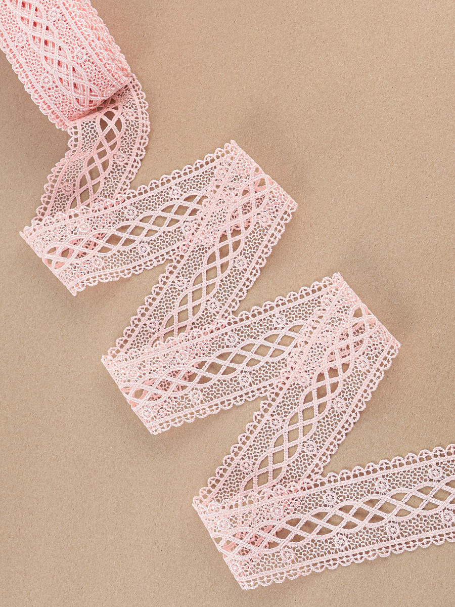 Кружево гипюровое, 40 мм, 11±1 м, нежно-розовое. Гипюр представляет собой объемное плотное кружево с четкими плетеными узорами. Плетеное кружево выглядит изящно и богато, поэтому используется, когда требуется подчеркнуть стиль, эстетику, сделать акцент на роскоши. Его можно использовать для пошива одежды и аксессуаров, декорирования предметов интерьера и многого другого. Данное кружево особого высокого качества, прямиком из Турции. Производится на швейцарском оборудовании.