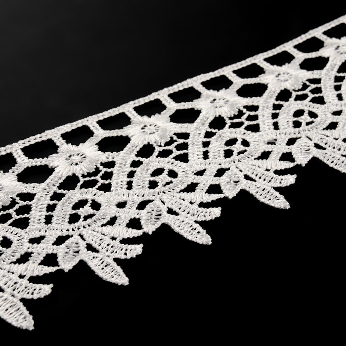 Кружево гипюровое, 65 мм × 9 ± 0,5 м, цвет белый