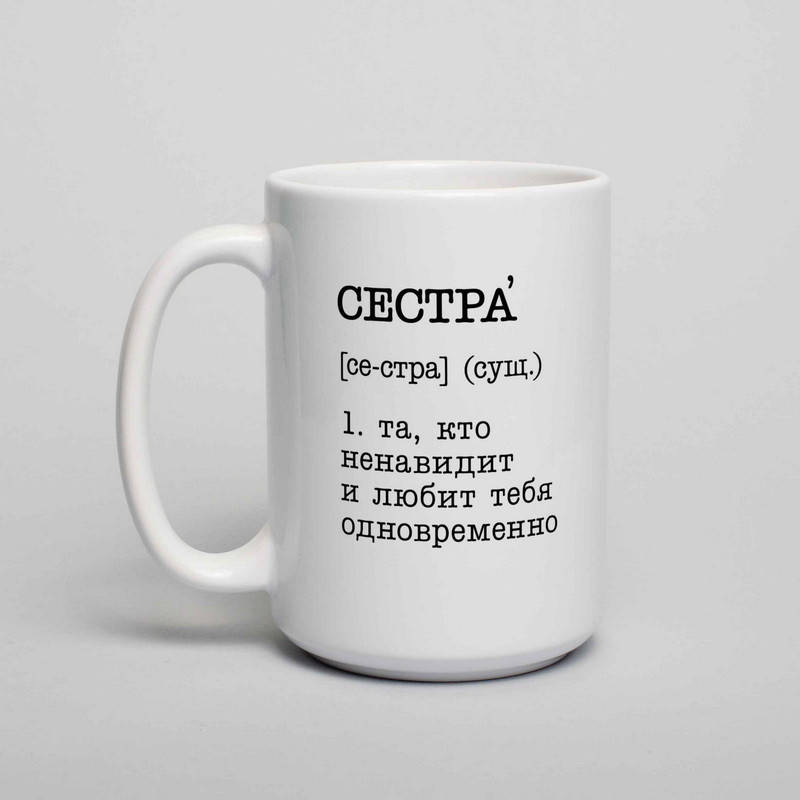 Кружка "Сестра - та, кто ненавидит и любит тебя одновременно"