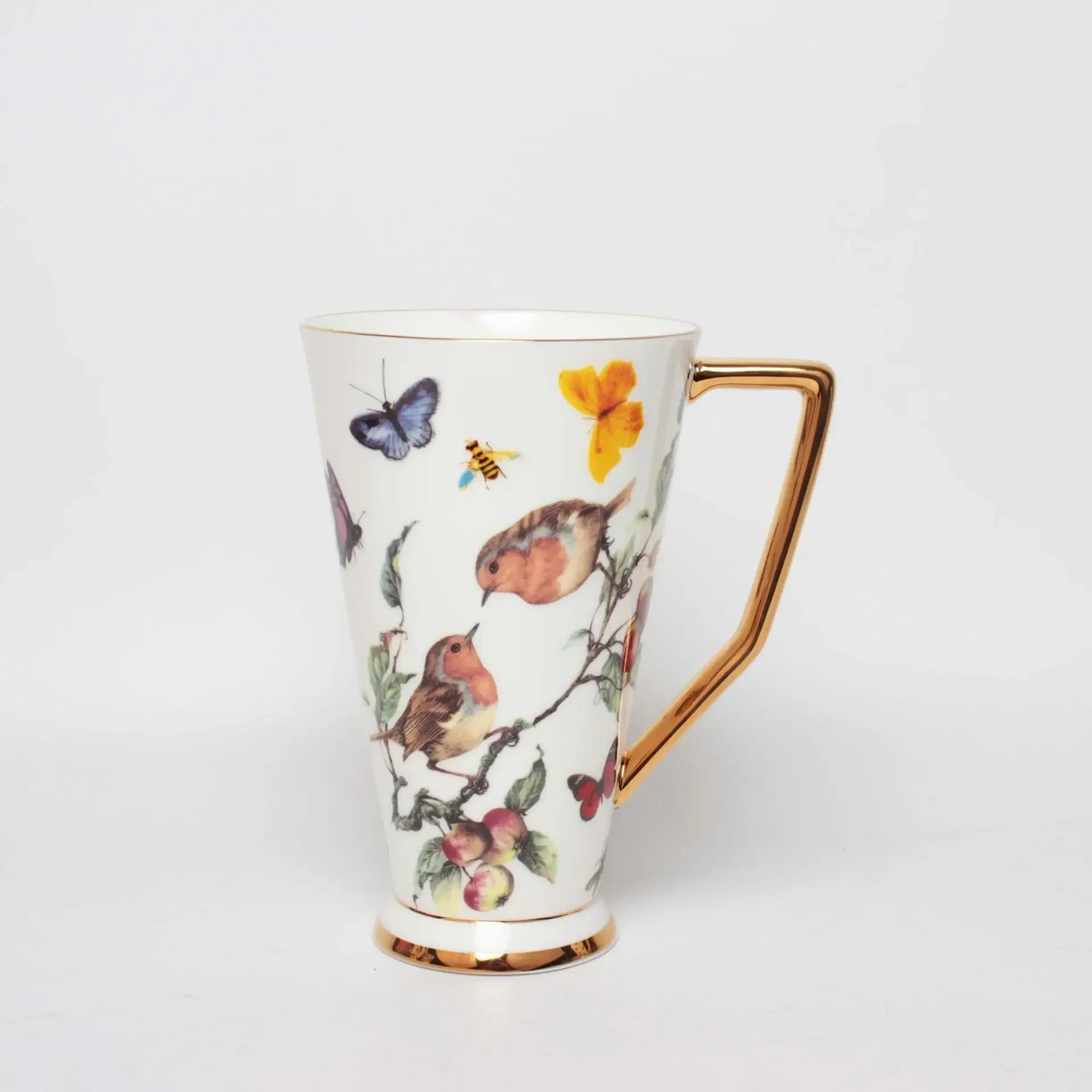 Кружка из костяного фарфора Керамическая чашка большой емкости Пасторальная чашка с цветком и рогом птицы Бокал Чашки для воды Кофейные чашки Кружка Кофейная кружка 570ML