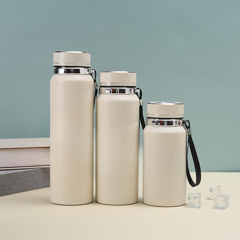 Кружка из нержавеющей стали 304, простая офисная деловая чашка для подарков, уличный портативный слинг, солнцезащитный горшок 600ml бежевый