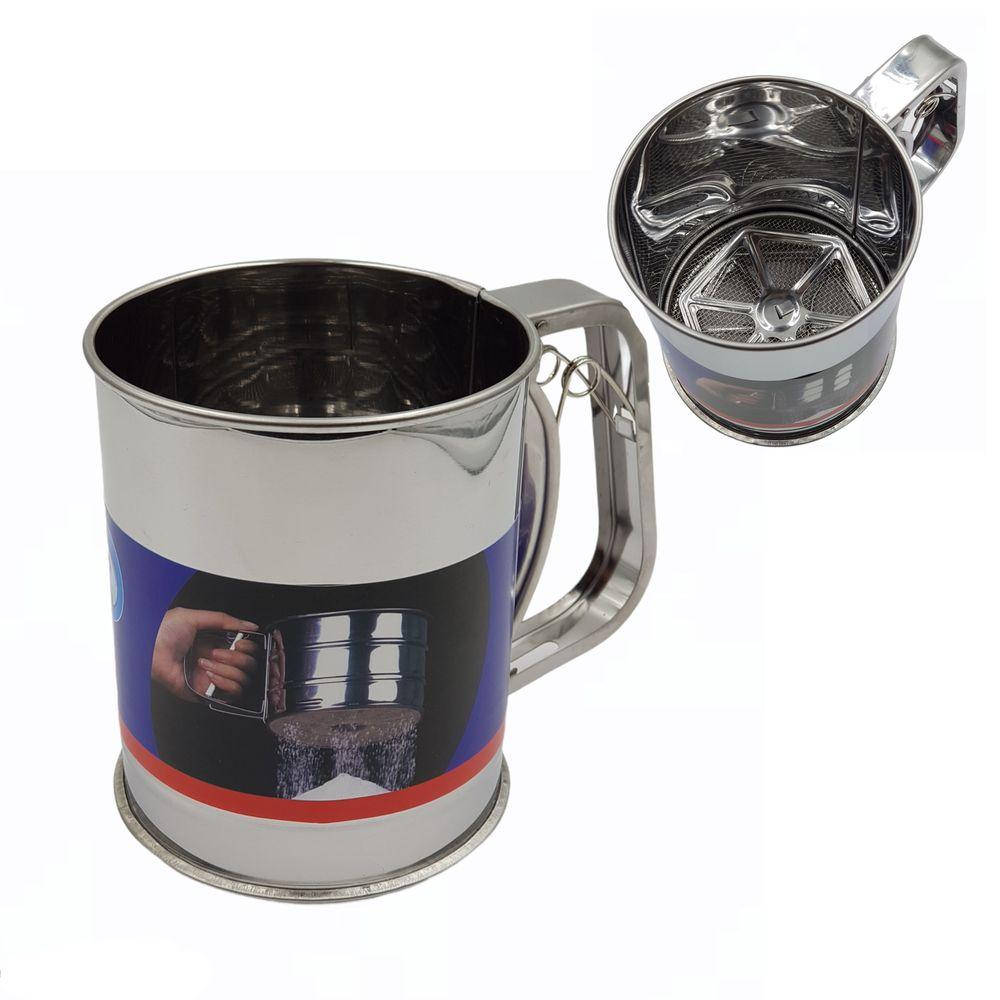 Кружка-сито металлическая R225 - удобное кухонное приспособление, незаменимое для каждого, кто имеет дело с мукой и различными мелкодисперсными продуктами питания. Данный аксессуар прекрасно подойдет для просеивания муки, какао-порошка, сахарной пудры, сухого молока и пр. С помощью просеивания мука и другие сыпучие продукты очищаются от примесей и насыщаются кислородом.
