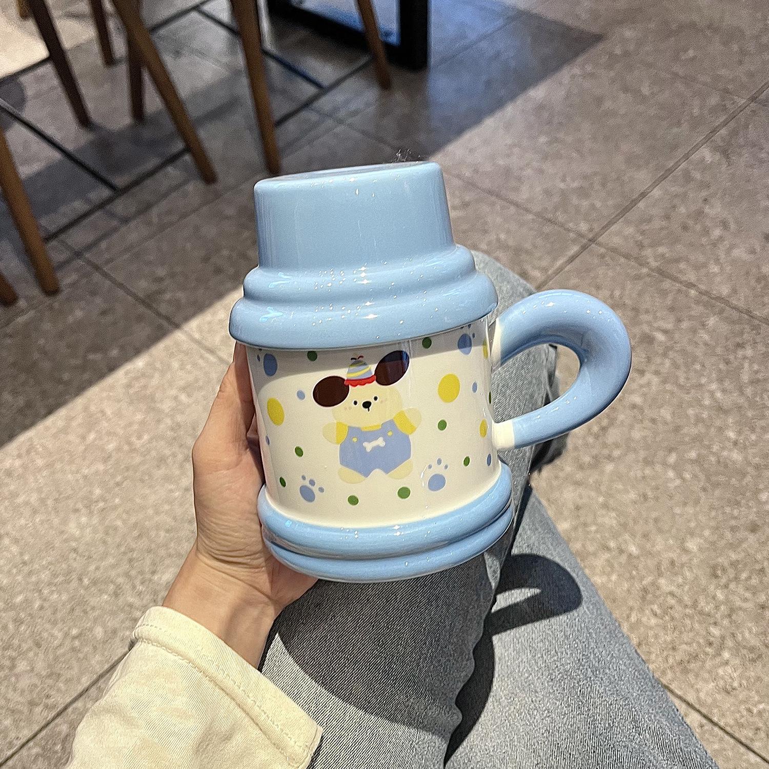 Кружка с крышкой Высококачественная керамическая чашка Большой емкости Парная чашка для воды Женская для дома и офиса Чашка для кофе и завтрака 401-500ml