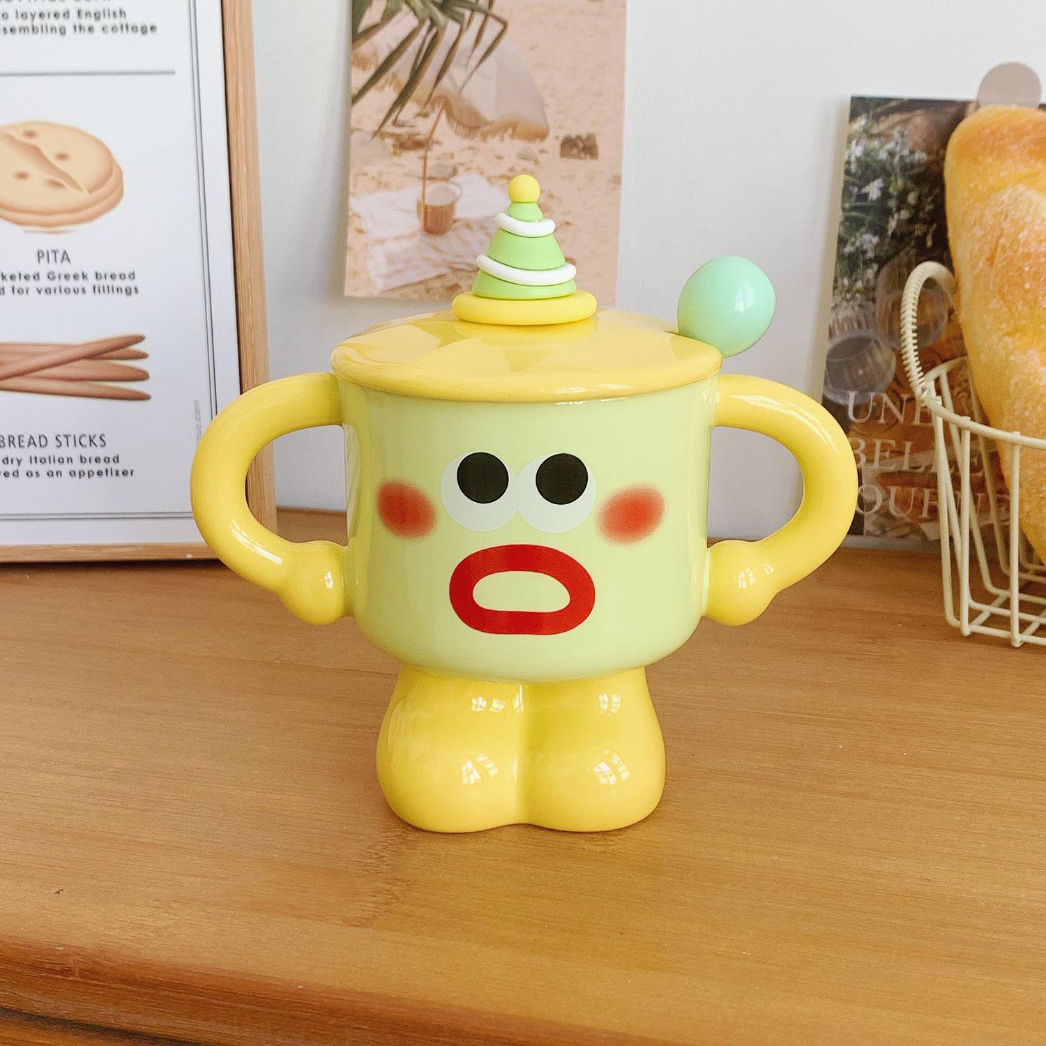 Кружка с крышкой и ложкой, милая чашка, керамическая, необычная чашка для воды, для пары, подарок для девушек на день рождения, сувенир 301-400ml