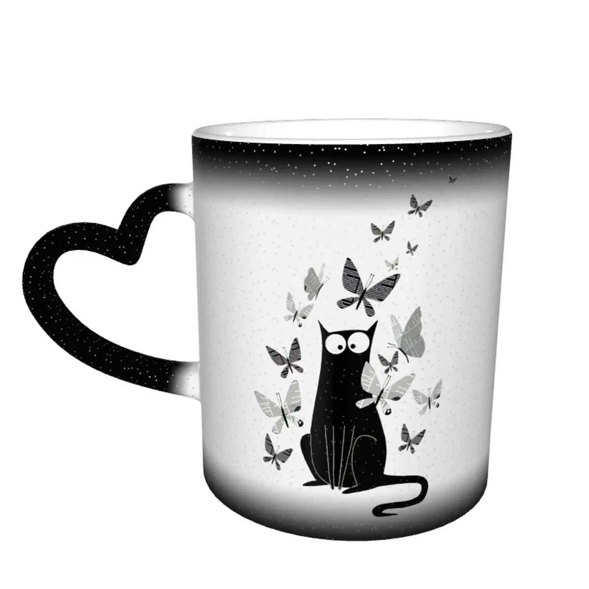 Кружка с черной кошкой, меняющая цвет, оптовая продажа, кружка, модные керамические латте чашки
