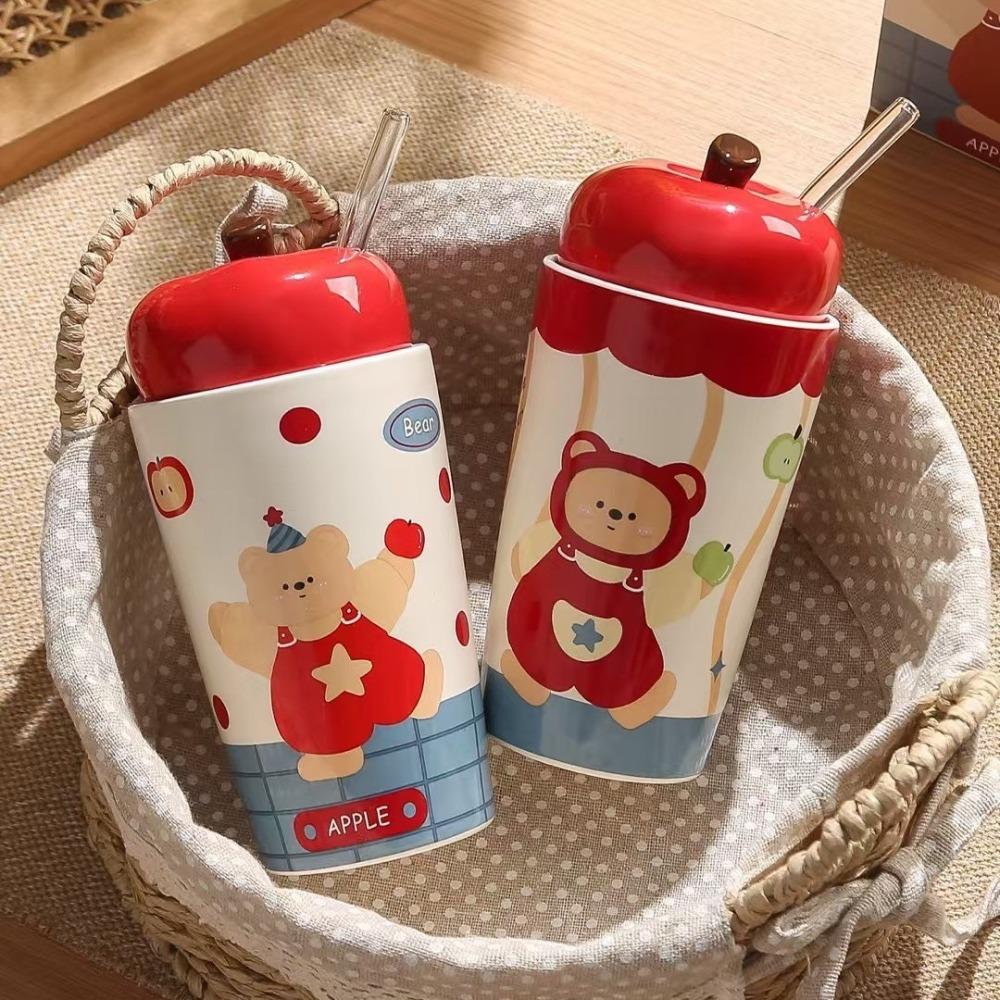 Кружка Apple Bear, легкая чашка, высокая, симпатичная, милая, для девочек, подарок на день рождения, большая емкость, кофейная чашка с трубочкой 401-500ml