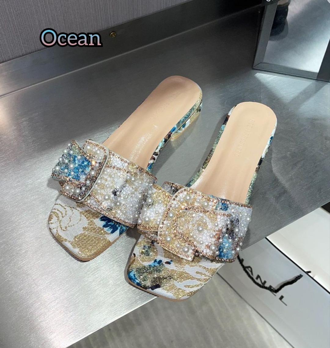 Крутые шлепанцы на толстом каблуке женские летние модные на плоской подошве женские туфли со стразами шлепанцы 2025 новая летняя коллекция 41