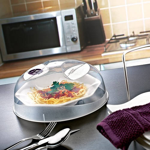 Надежно защищает микроволновку от брызг, а охлаждаемые продукты от обветривания.