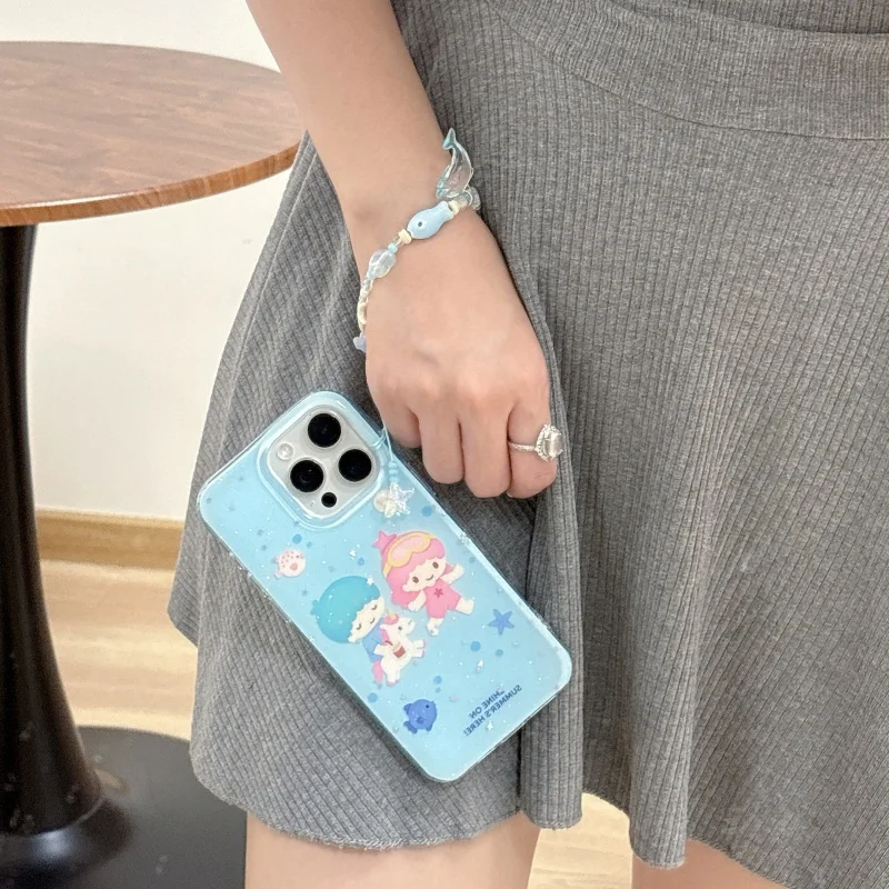 Korea Couple Cartoon Cute star Little Bling Glitter Phone Case For iPhone 13 14 15 16 Pro Max Lovely Twindolphin Gemini Cover