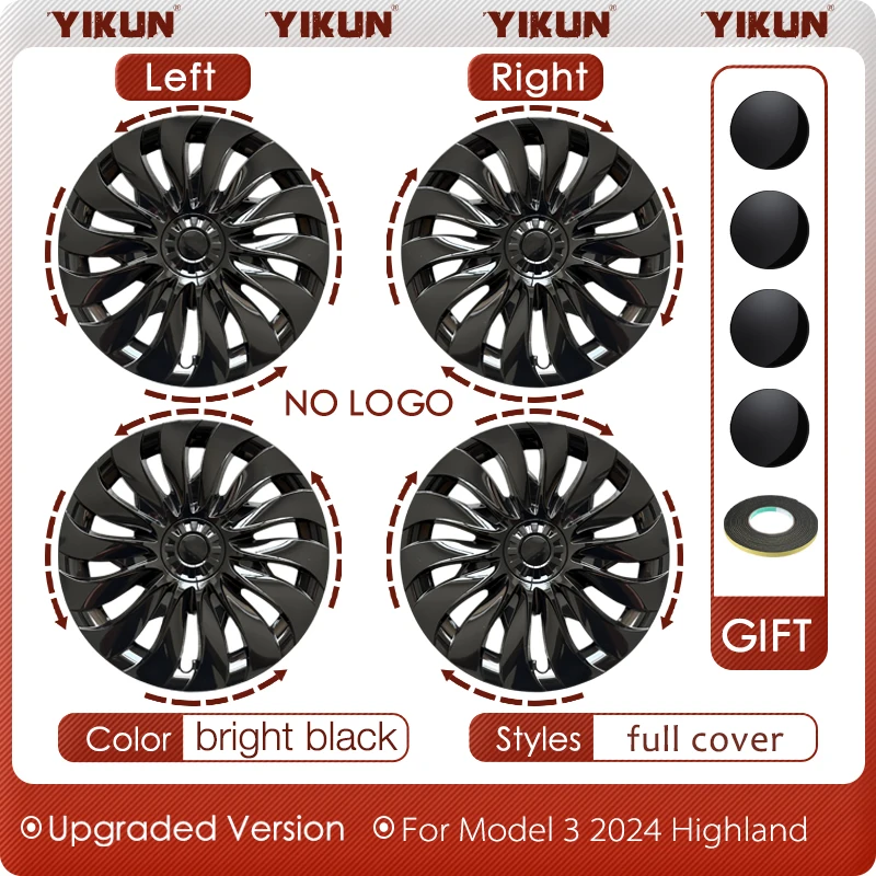 Крышка ступицы из 4 шт. для нового Tesla Model 3 Highland 2024, 18-дюймовая сменная крышка колеса, автомобильная полная крышка обода, аксессуары