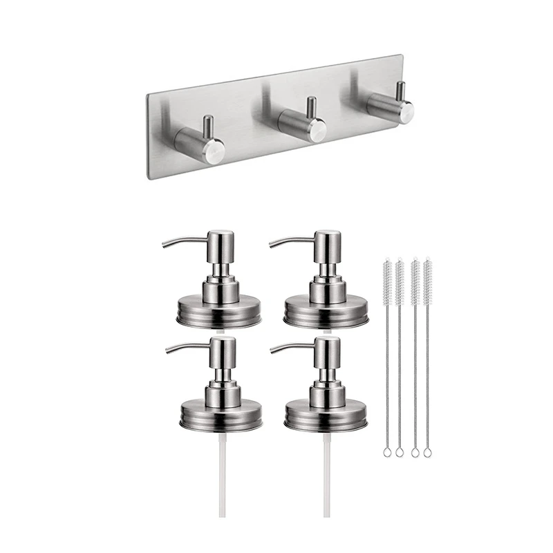 Крючок на клейкой основе, настенные крючки для полотенец с 4 крышками и насосами для дозатора мыла в каменной банке 16 унций, 4 Щетки для очист...
