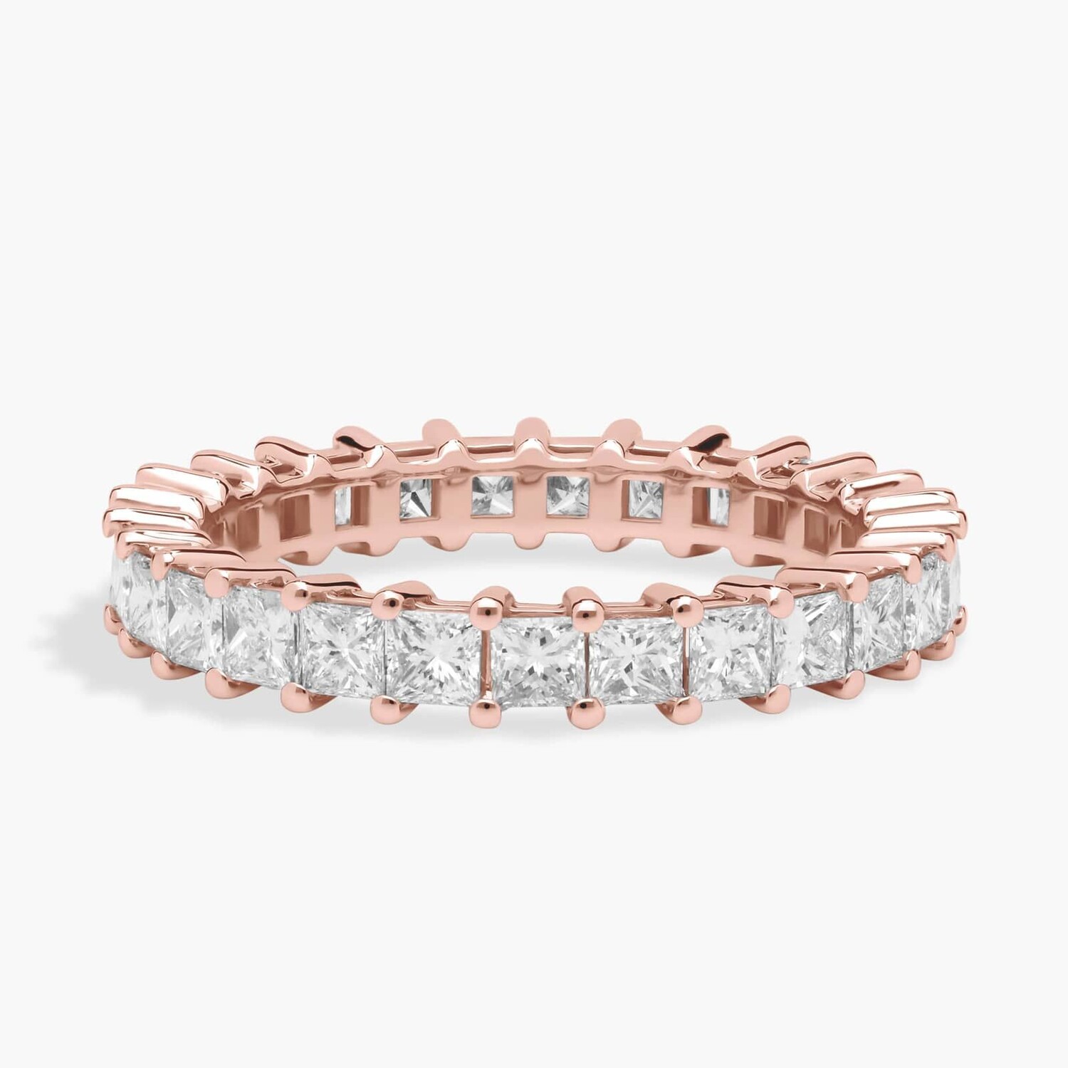 Кольцо Eternity с выращенным в лаборатории бриллиантом огранки «Принцесса» из розового золота 14 карат (2 карата, двойной - FG / VS2-SI1) Blue Nile