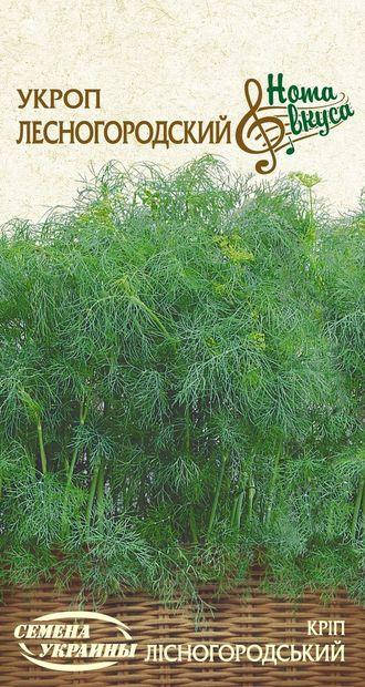 Укроп Лесногородский 3 грамма - Середньостиглий сорт з уповільненим утворенням суцвіть. Листки великі, довжиною 20-25см, соковиті, з сильним ароматом, темно-зеленого кольору. Рослина сильно облистнена, тривалий час зберігає товарні якості. Збір зелені можна проводити через 35-45 днів після висіву, коли висота рослин сягає 10-20см. Використовують у свіжому та сушеному вигляді, а також для засолу.