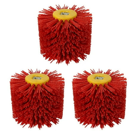 3X Red Abrasive Wire Drum Brushes Deburring Polishing Buffing Wheel for Furniture Wood Angle Grinder Adapter