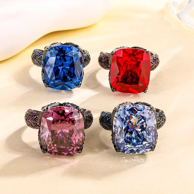 Ювелирные изделия 2024 S925, посеребренное золото 18 карат, ретро корунд, черное золото, светлое роскошное кольцо, женское кольцо 14*16