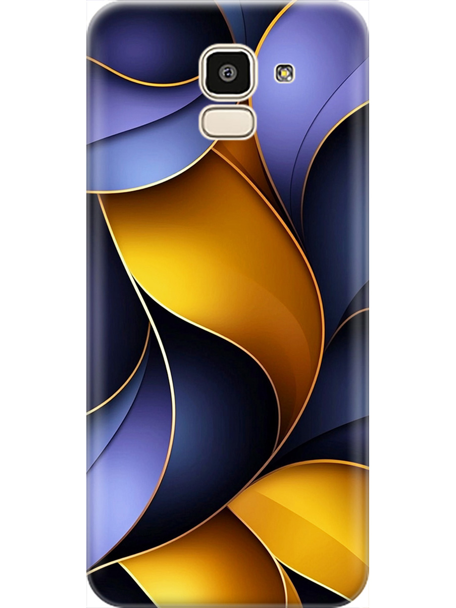 Силиконовый чехол на Samsung Galaxy J6 (2018) с принтом "Желто-сиреневые изгибы", Прозрачный;желтый;фиолетовый, 718359031