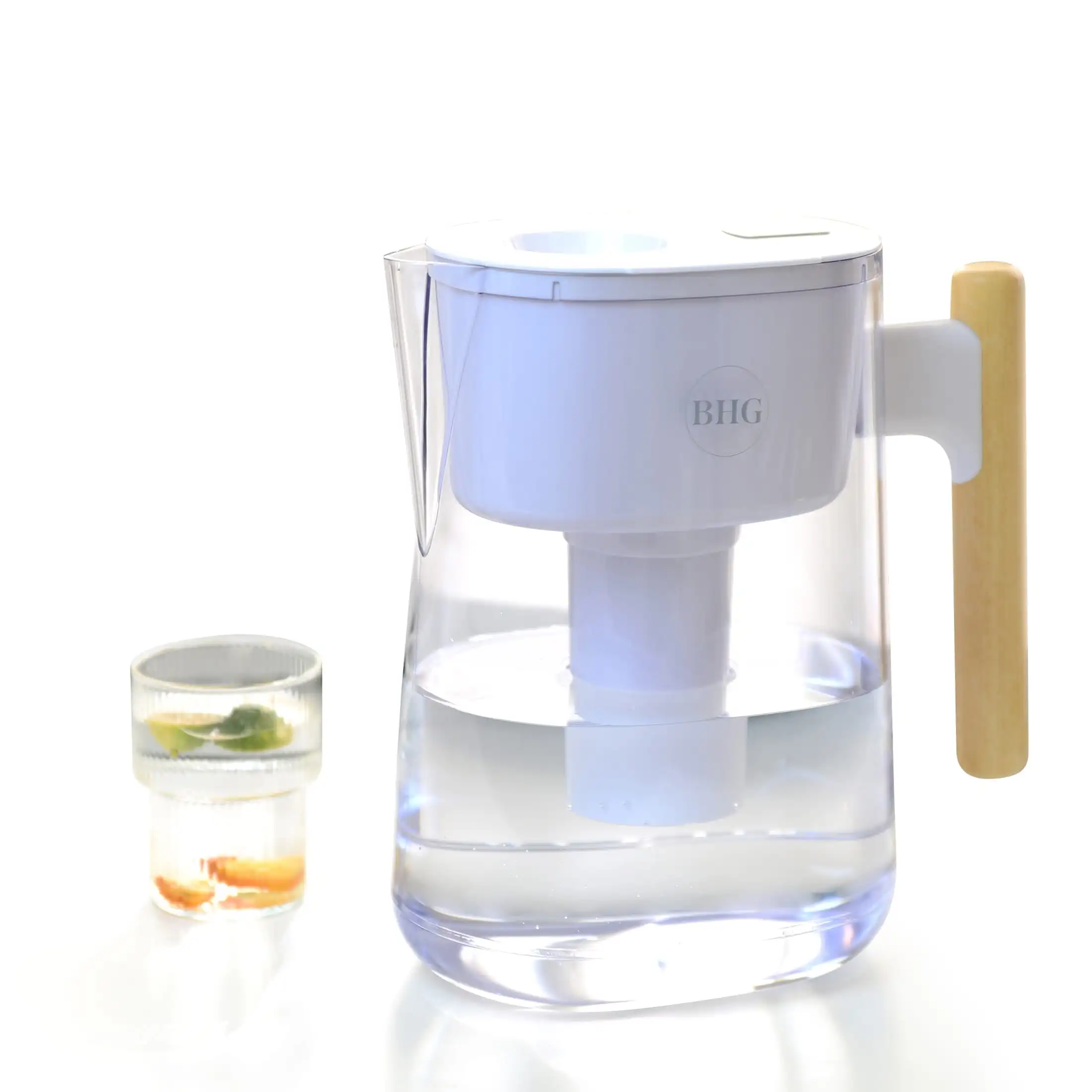 Кувшин с белым фильтром для воды, 10 чашек, подходит для Brita, деревянная ручка, размер в сборе: 10 H x 6 L x 5 W дюймов
