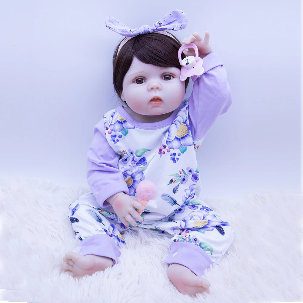 Кукла реборн с большими глазами 57 см, милая кукла с круглым лицом для малышей 0-6 мес., полностью силиконовый комплект Реборн, игрушки для куко...