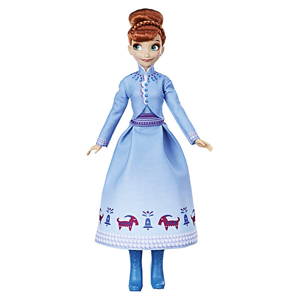Кукла Анна «Холодное Сердце» выглядит в точности как героиня мультфильма. На ней голубое платье и сапожки, волосы мягкие, их можно расчесывать.