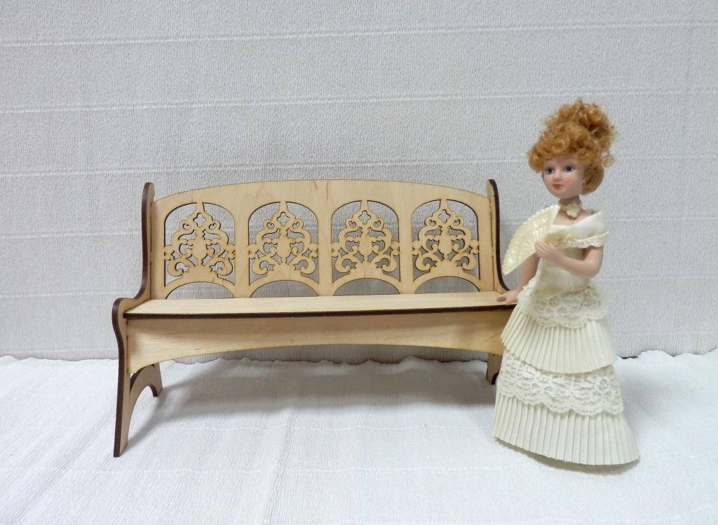 Кукольная мебель.Скамейка.Размер 25,8х11х15,7см.