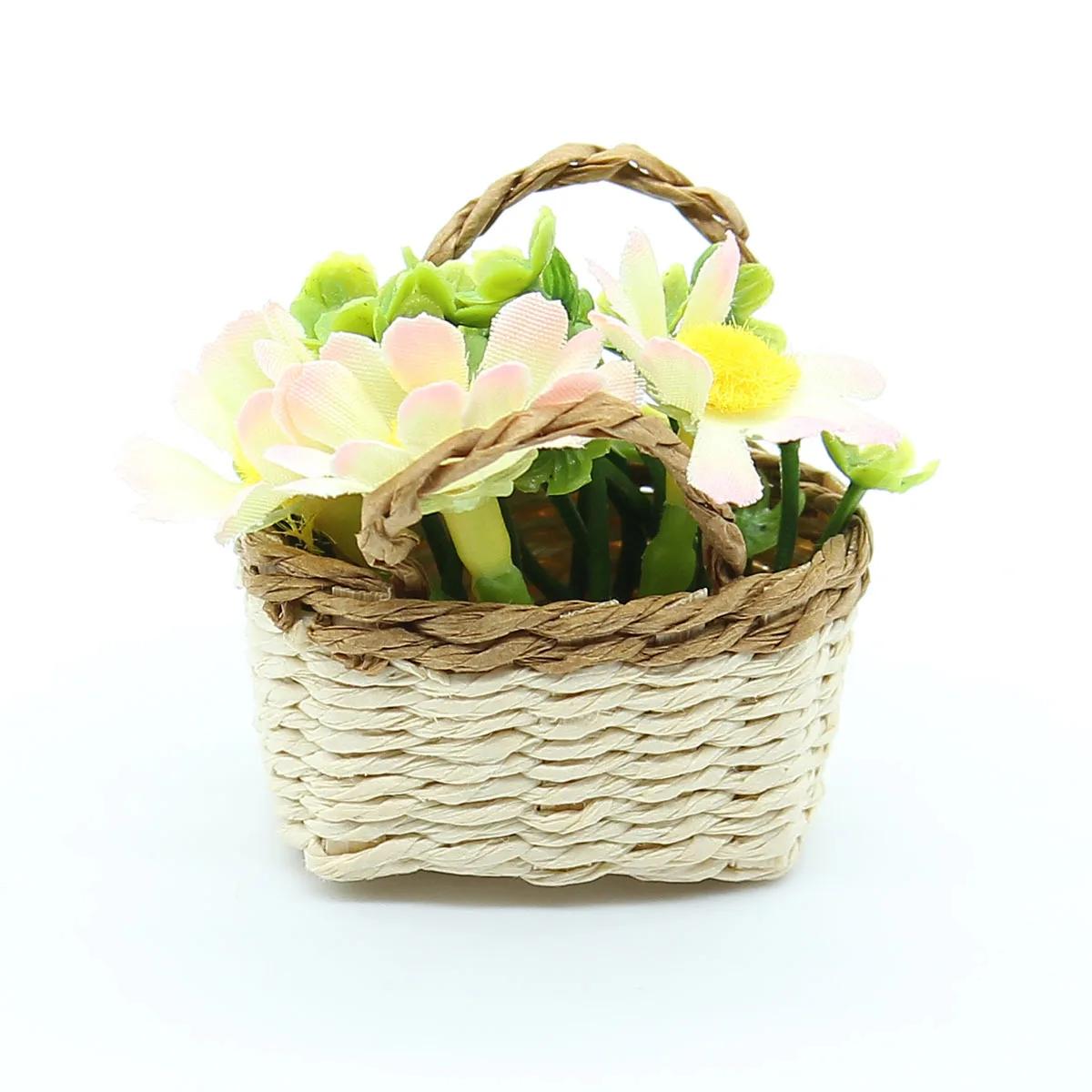 Кукольный домик Мини Цветочная корзина Ручная работа Рафия Сделай Сам Сплетенный Цветок Модель Миниатюрная Еда Игровые Масштабные Кукольные Аксессуары Домашний Декор