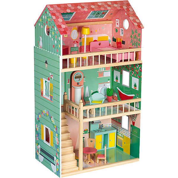 Кукольный домик Janod Happy Day, 12 элементов мебели, Разноцветный, Кукольный домик Janod Happy Day, 12 элементов мебели