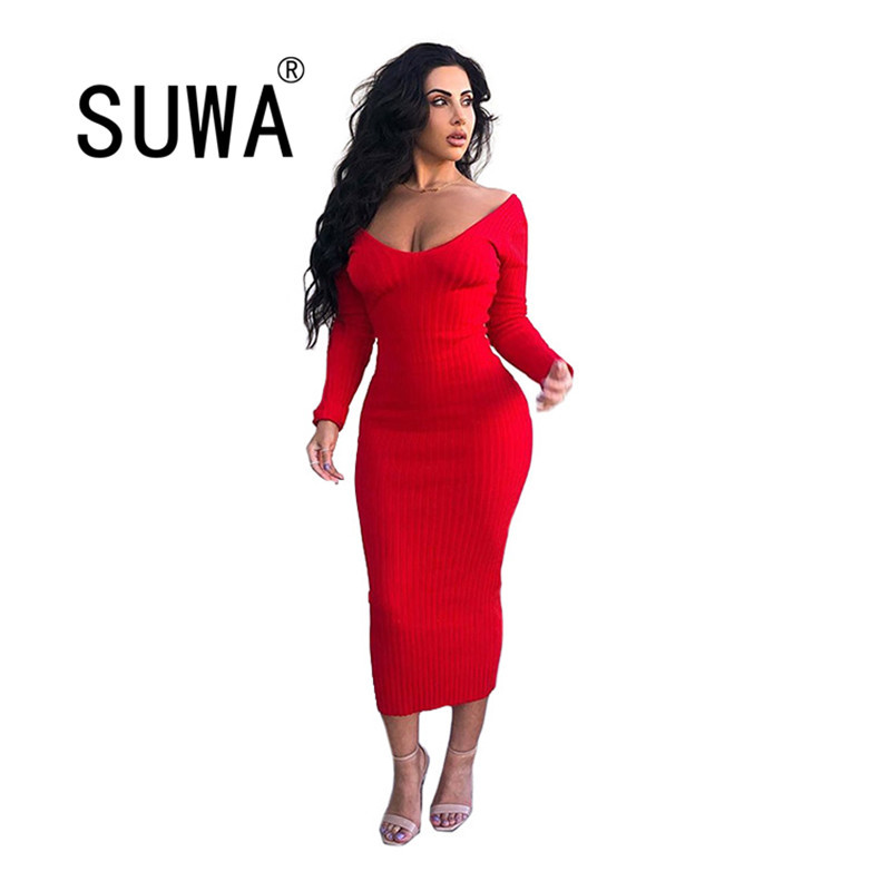 Autumn Spring Clothes Women Wedding Dress High Waist Long Sleeve Midi Sexy es Party Night Club 210525, Red