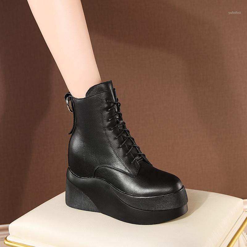 Top Quality Genuine Leather Women lace up Ankle Boots Winter Fashion Flats Platform Short Boots casual Shoes Woman1, Beige