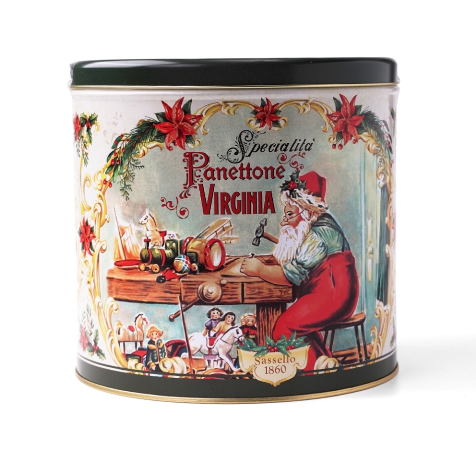 Кулич классический Amaretti Virginia Panettone с изюмом и цукатами в рождественской жестяной коробке