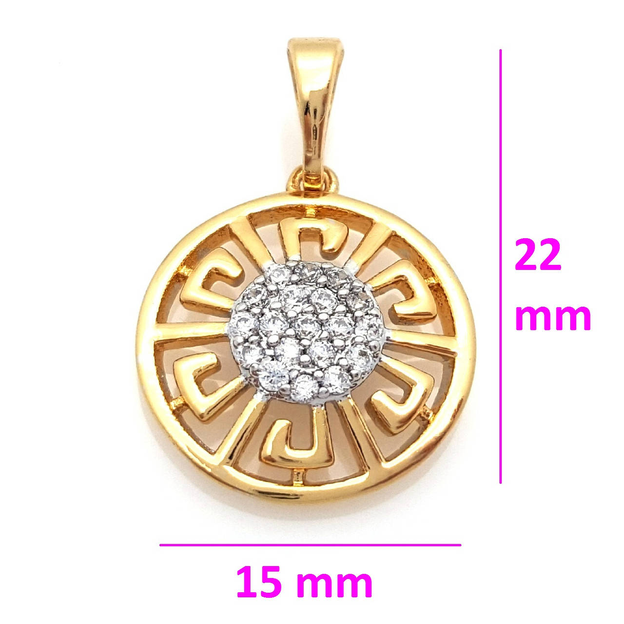 Кулон Круг с греческим рисунком, россыпь циркония, позолота + родий