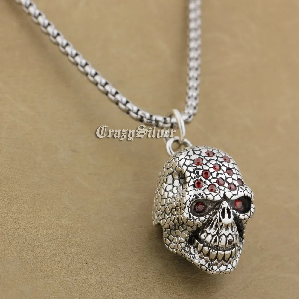 Кулон Мужской из серебра 925 пробы в виде черепа с красными Фианитами, 9S024 (ожерелье 26 дюймов)