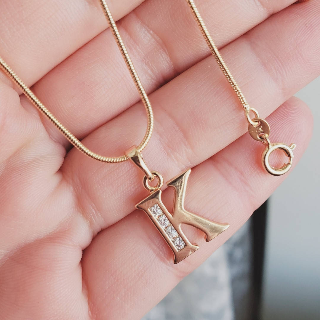 Кулон буква К с цепочкой снейк 1мм 50см xuping медицинское золото позолота 18К 5290