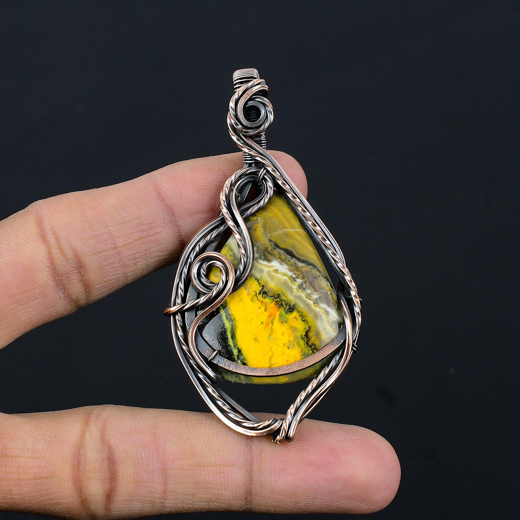 Кулон из шмелиной яшмы, ювелирное изделие из драгоценного камня, обернутое медной проволокой 999 пробы, кулон ручной работы, на День матери 2.55 Inches