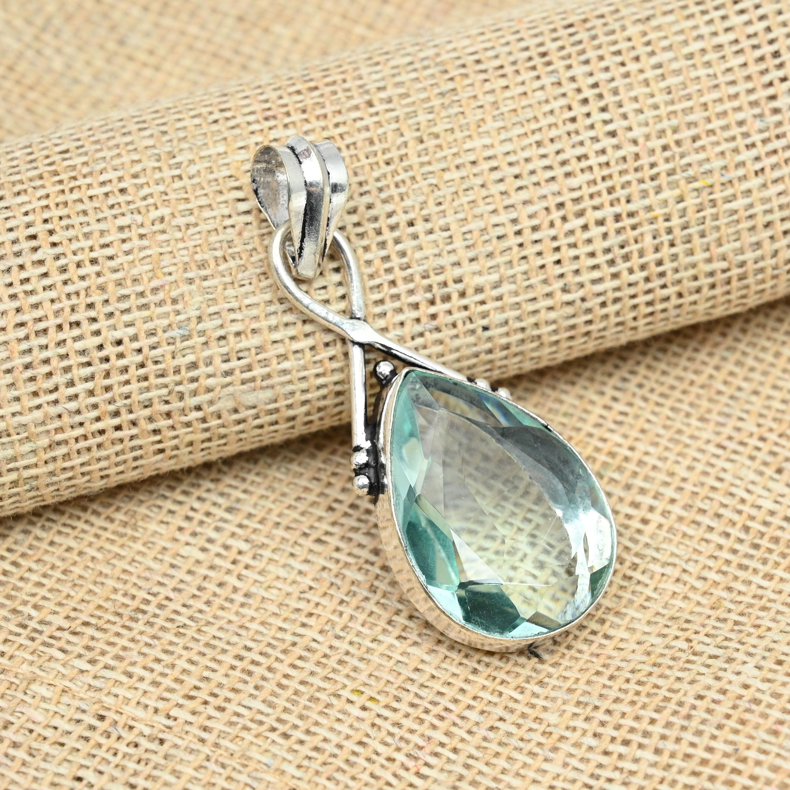 Кулон ручной работы из стерлингового серебра 925 пробы с зеленым аметистом для женщин 1.96 Inches зелёный