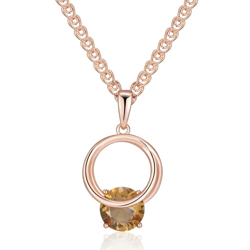 Кулон с полым кругом, одинарный желтый циркон, женское золотое ожерелье, роскошная толстая цепочка, модная повседневная бижутерия