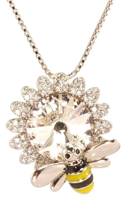 Кулон Xuping Родий с кр-ми Swarovski на цепочке "Цветок с кристаллом Сlear и пчелой" дл.39-44см х 1мм